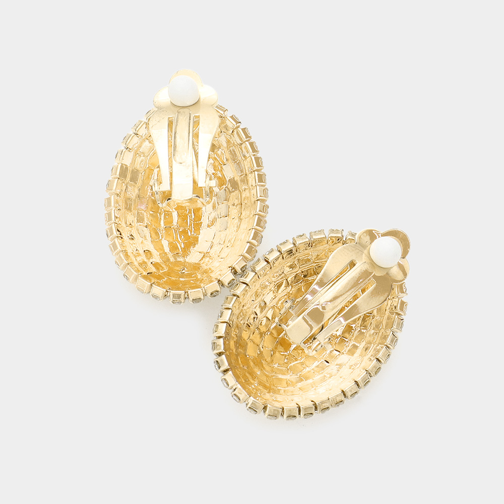 Multi Stone Embellished Seed Beaded Cutout Oval Dangle Earrings