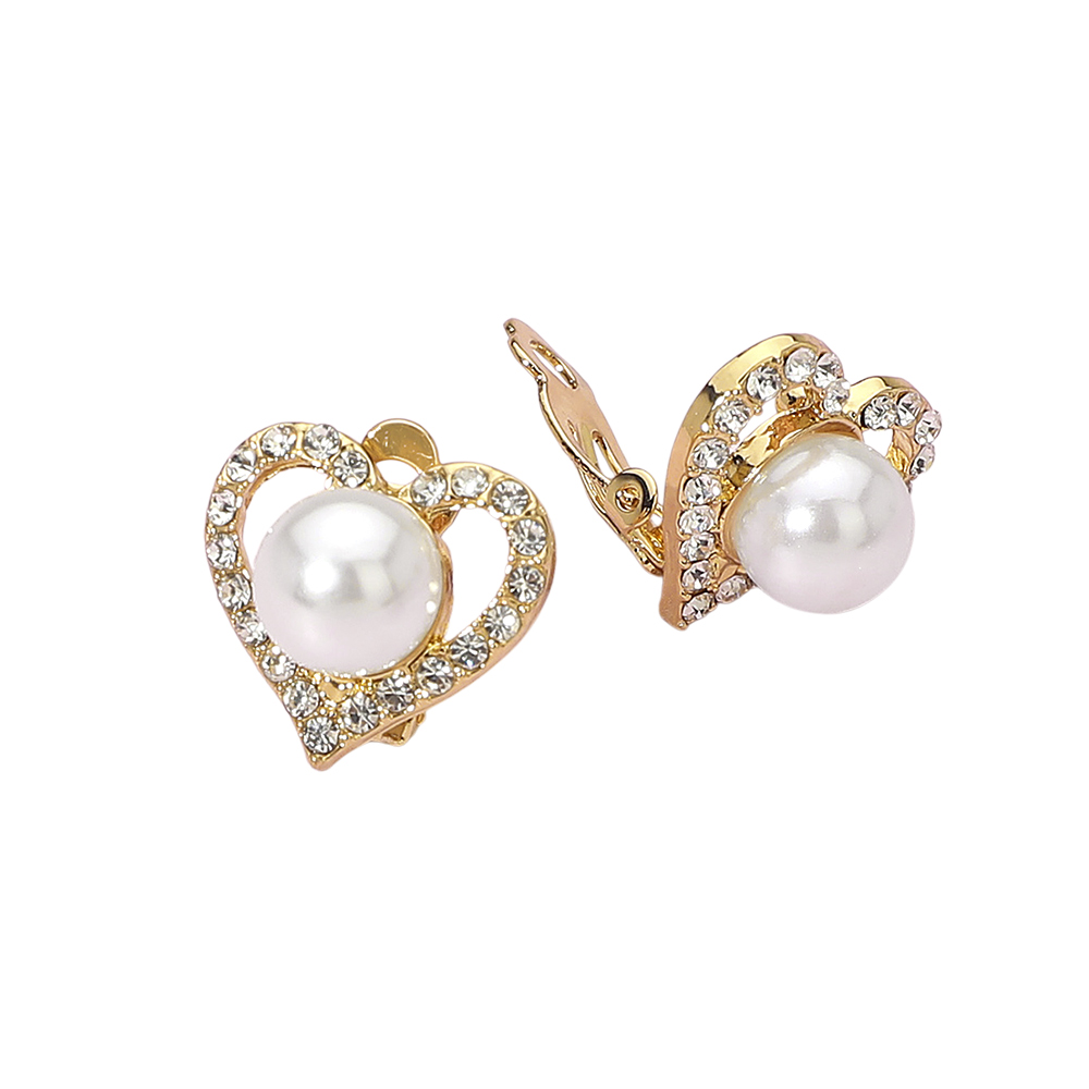 Details • Size : 0.75" X 0.75" • Clip On • Express timeless romance with these heart crystal pearl clip-on earrings. Designed with a radiant centerpiece and shimmering accents in a graceful heart shape, they bring elegance and charm to any look. Perfect for weddings, celebrations, or adding sparkle to everyday style. • Lead and Nickel Compliant