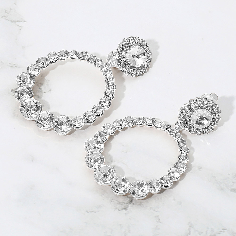 Details • Size : 1.5" X 2.3" • Clip On • These oversized hoop clip-on earrings feature a full-circle faceted stone cluster design and a secure non-pierced closure. Perfect for bold, modern styling without compromising on comfort or statement appeal. • Lead and Nickel Compliant
