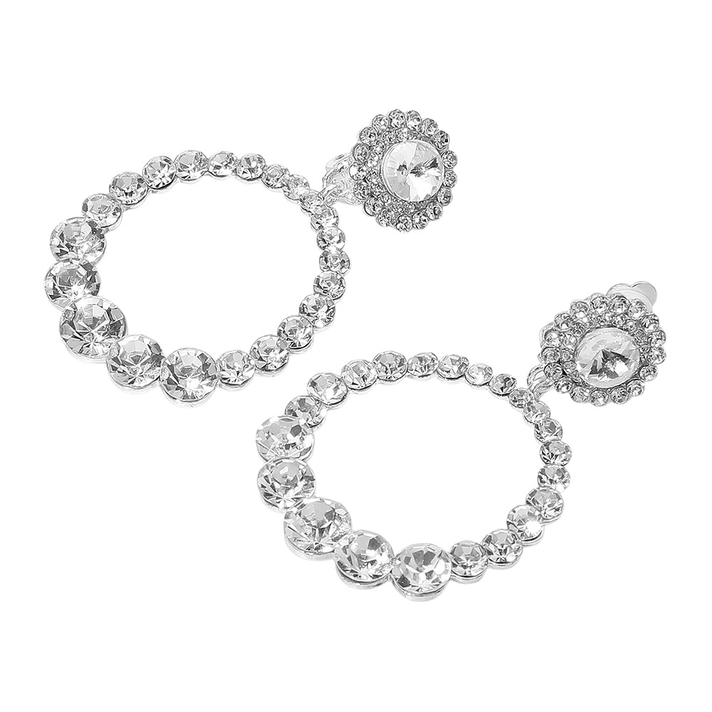 Round Faceted Stone Ring Dangle Evening Clip On Earrings
