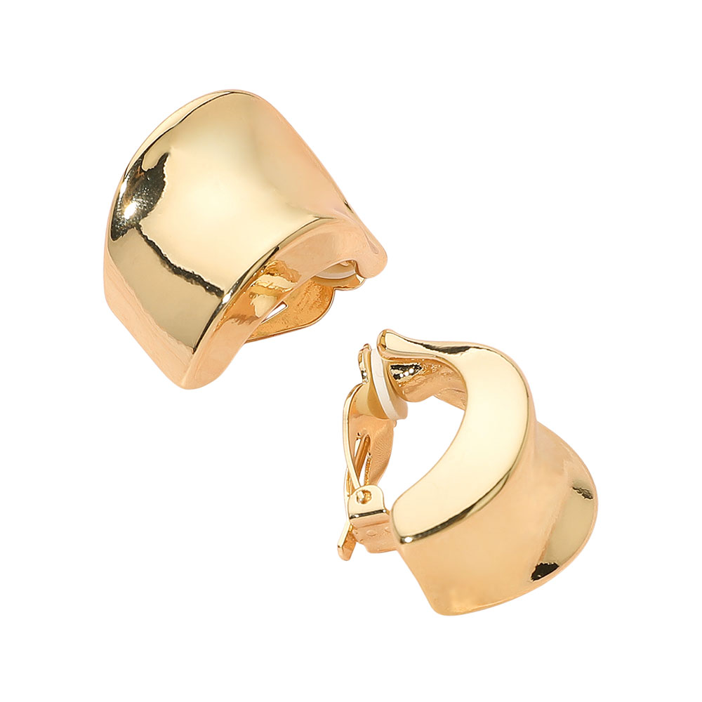 Details • Size : 0.8" X 1.2" • Clip On • These sculpted clip-on hoop earrings feature a smooth, curved silhouette that adds modern refinement to any look. Their sleek, contoured design offers effortless style and comfort, creating a versatile accessory suitable for everyday wear or elevated outfits. • Lead and Nickel Compliant