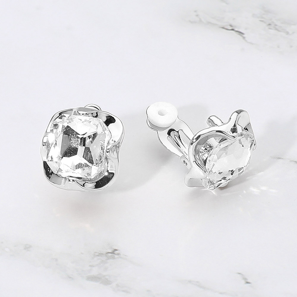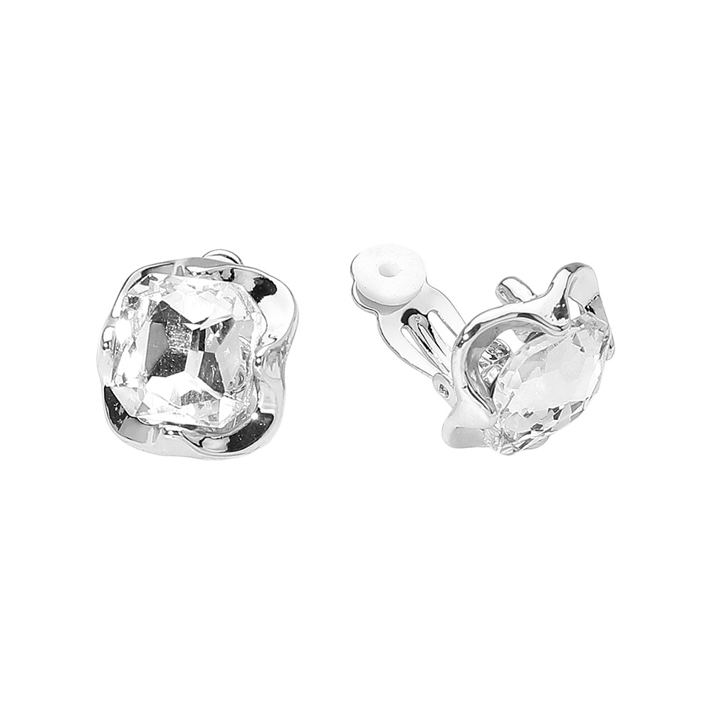 Details • Size : 0.6" X 0.6" • Clip On • Elegant square crystal clip-on earrings featuring a faceted gemstone design framed in a chic sculpted setting. Comfortable clip-on style adds timeless shine to both casual and dressy looks, perfect for effortless everyday elegance. • Lead and Nickel Compliant