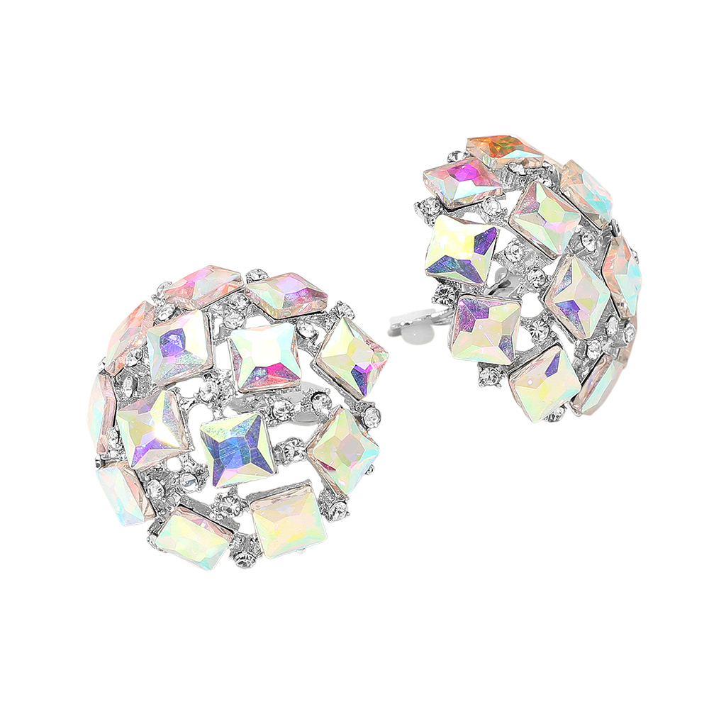 Details • Size : 1.5" X 1.5" • Clip On • Eye-catching rhinestone dome stud earrings with multi-faceted sparkle. Perfect for statement looks, parties, or adding glam to any outfit. Lightweight and comfortable to wear all day. • Lead and Nickel Compliant
