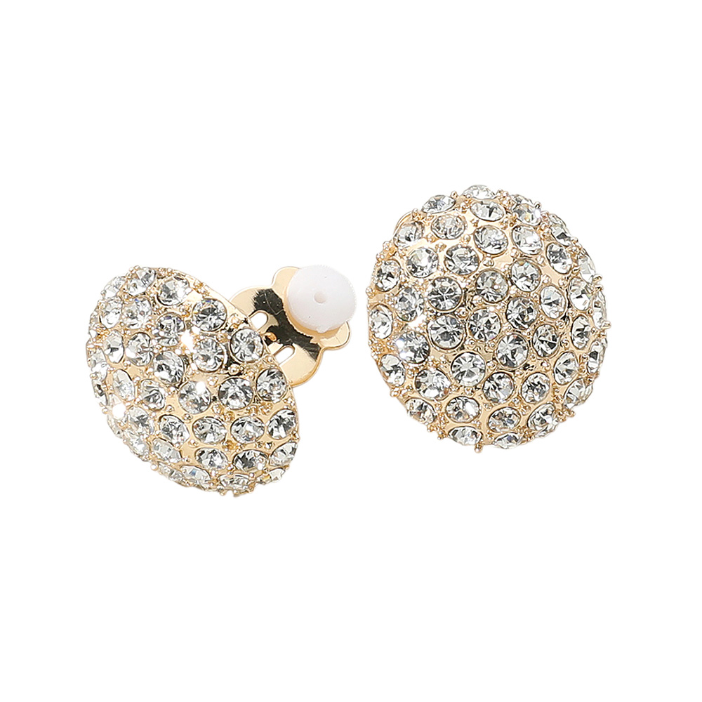 • These crystal pave clip-on earrings feature a rounded dome design encrusted with sparkling stones. Comfortable and stylish, they add timeless elegance to both casual and formal outfits, making them perfect for accessorizing without pierced ears.