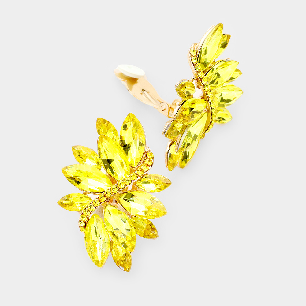 Swirl Glass Crystal Marquise Cluster Clip On Earrings
