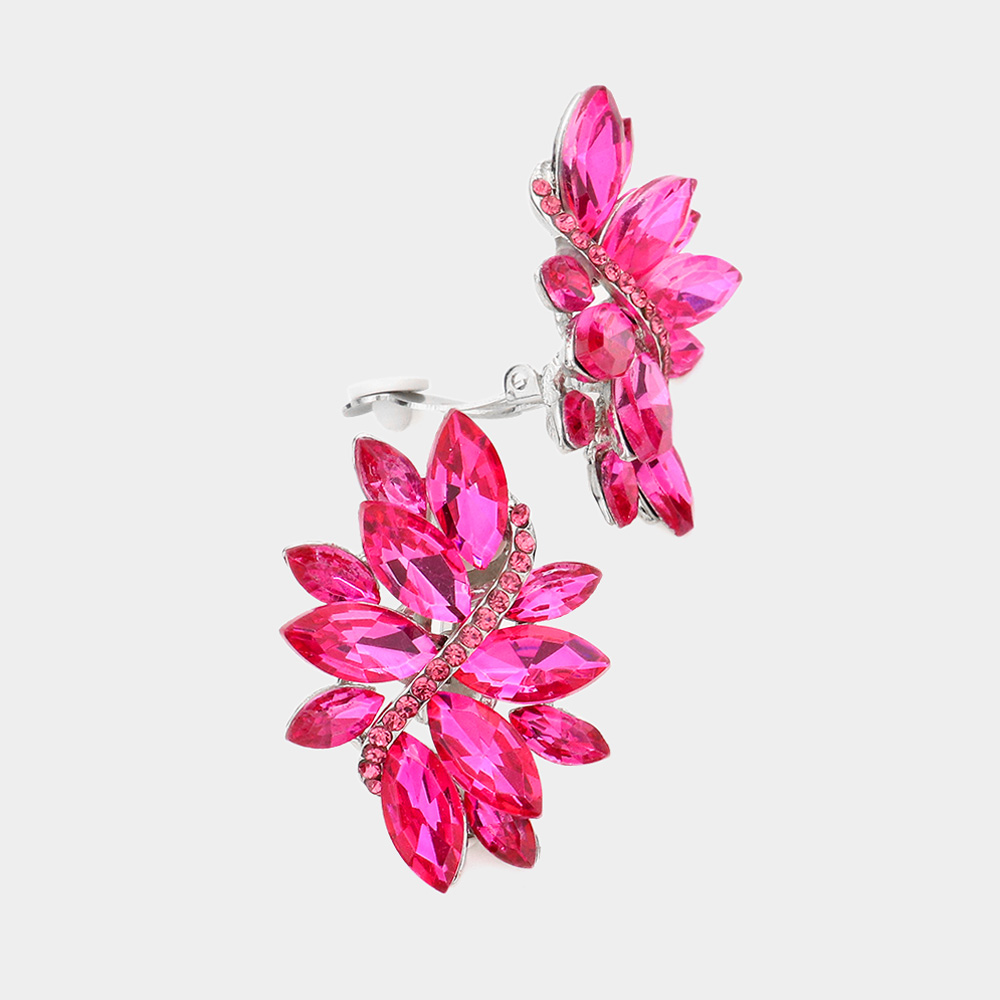 Swirl Glass Crystal Marquise Cluster Clip On Earrings