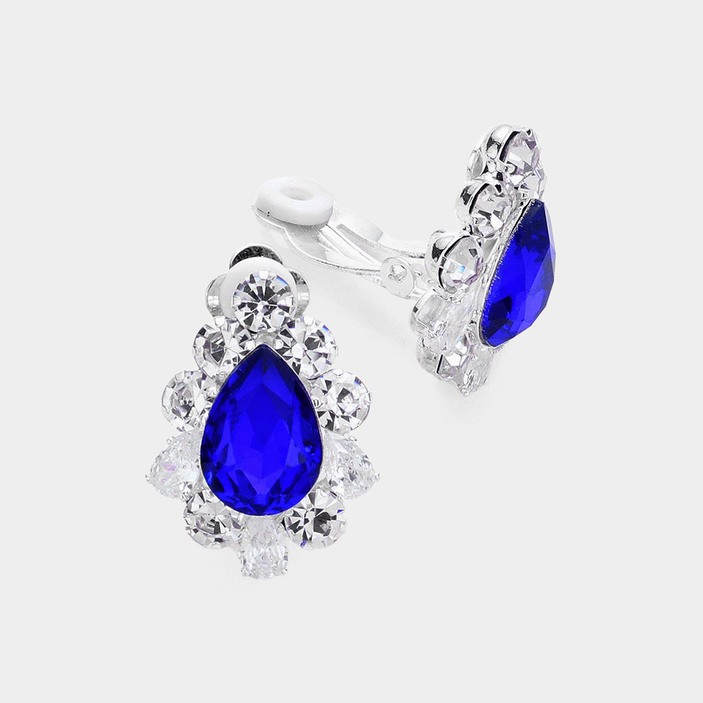 Teardrop Centered Bubble Stone Trimmed Clip on Earrings