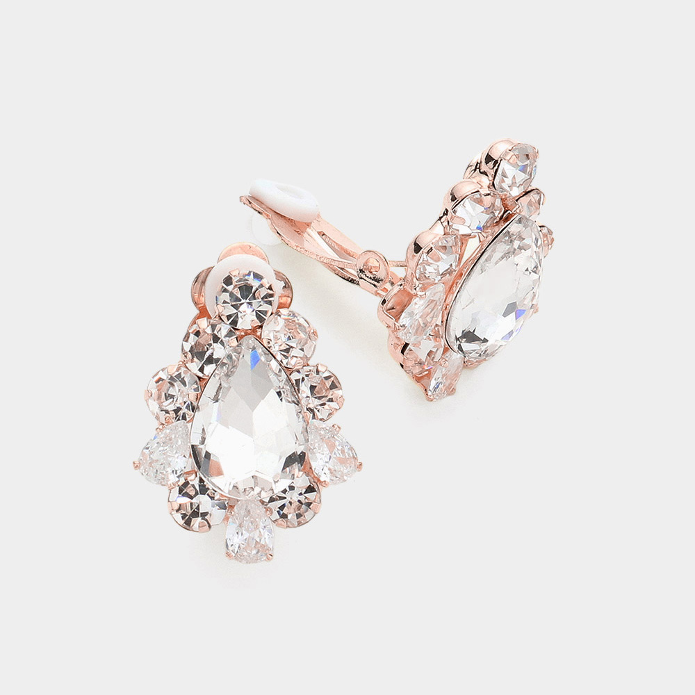 Teardrop Centered Bubble Stone Trimmed Clip on Earrings