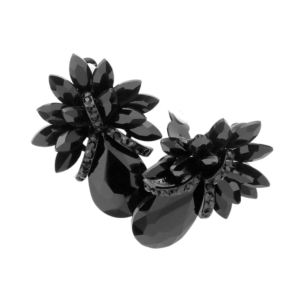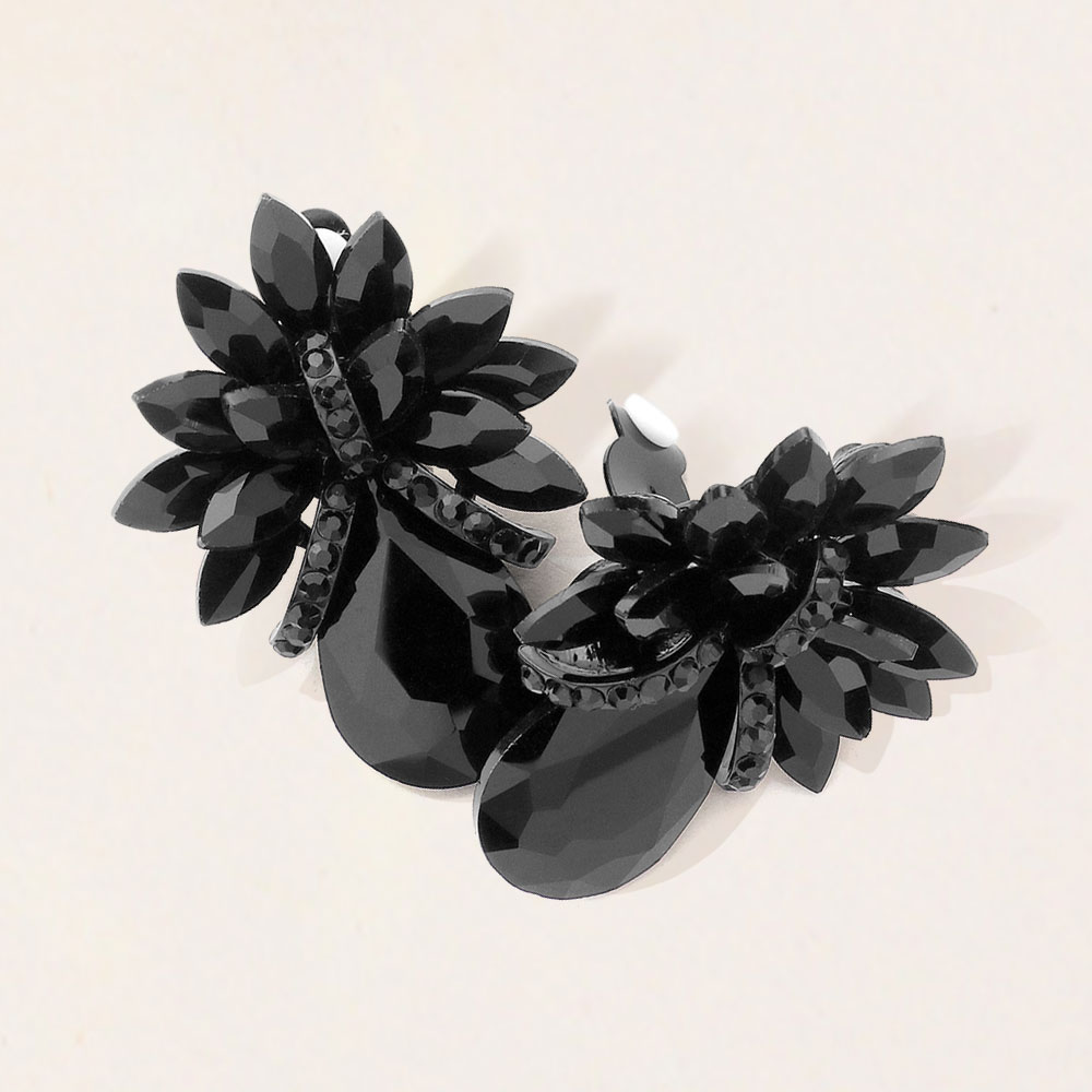 Details • Size : 1.75" X 2.25" • Clip On • Stunning clip-on earrings designed with a leaf cluster arrangement and dazzling crystal accents. These bold statement earrings add a glamorous touch to any outfit, perfect for parties, weddings, and evening events where timeless sophistication meets modern sparkle.