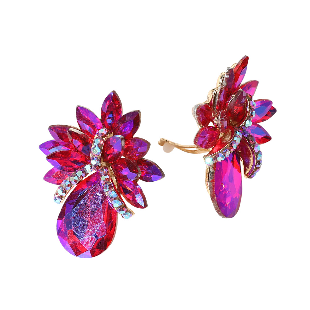 Teardrop Stone Pointed Flower Rhinestone Paved Necklace