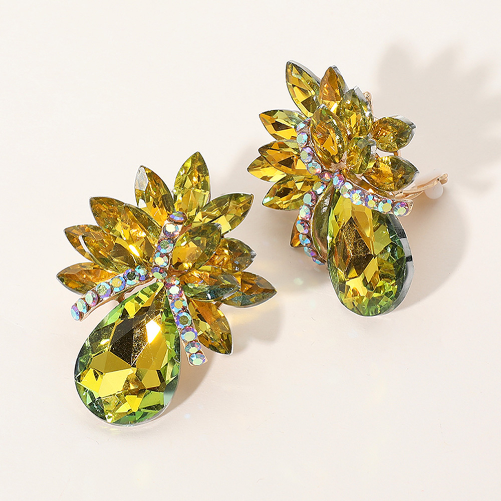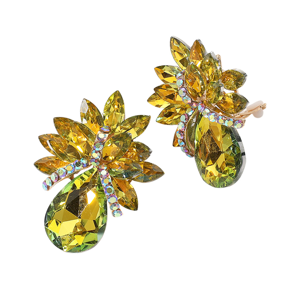 Rectangle Stone Accented Marquise Stone Embellished Evening Earrings