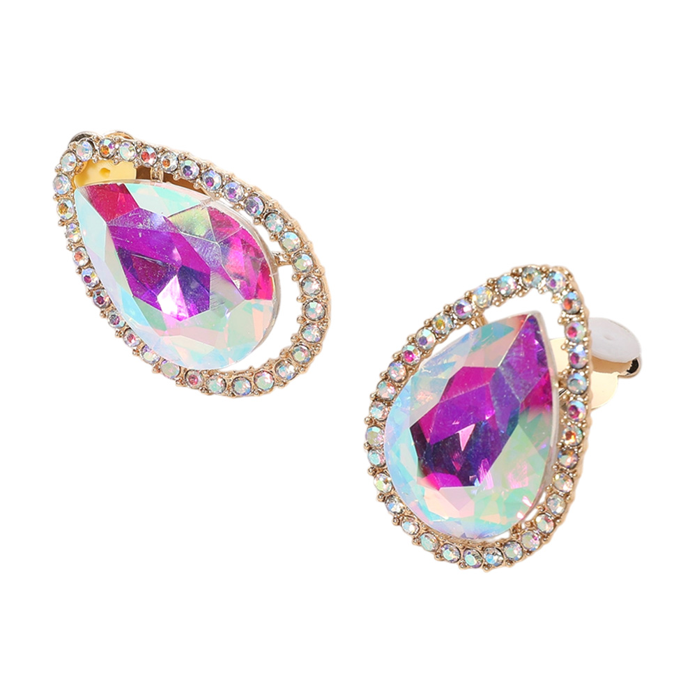Teardrop Stone Evening Clip On Earrings