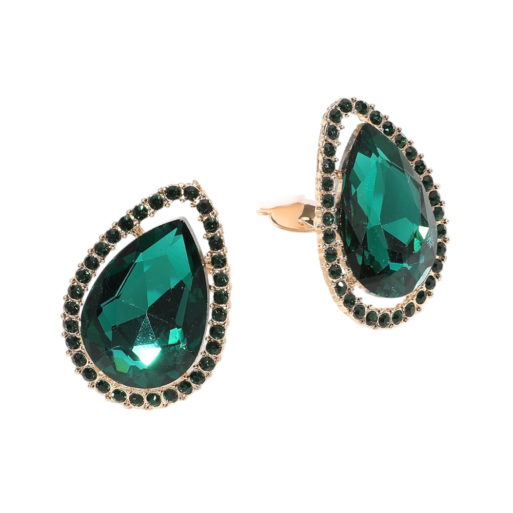 Teardrop Stone Evening Clip On Earrings