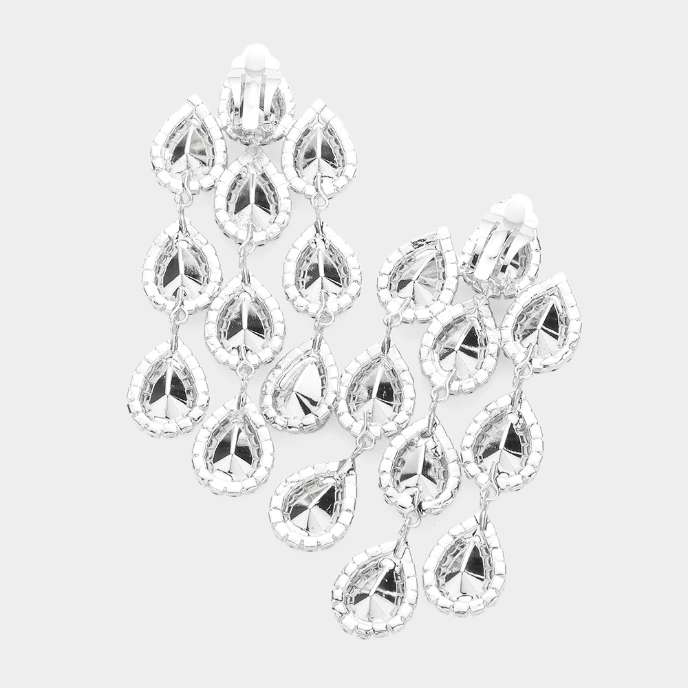 Teardrop Stone Link Dangle Clip on Evening Earrings