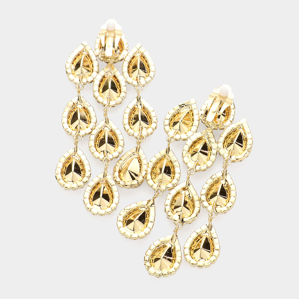 Teardrop Stone Link Dangle Clip on Evening Earrings