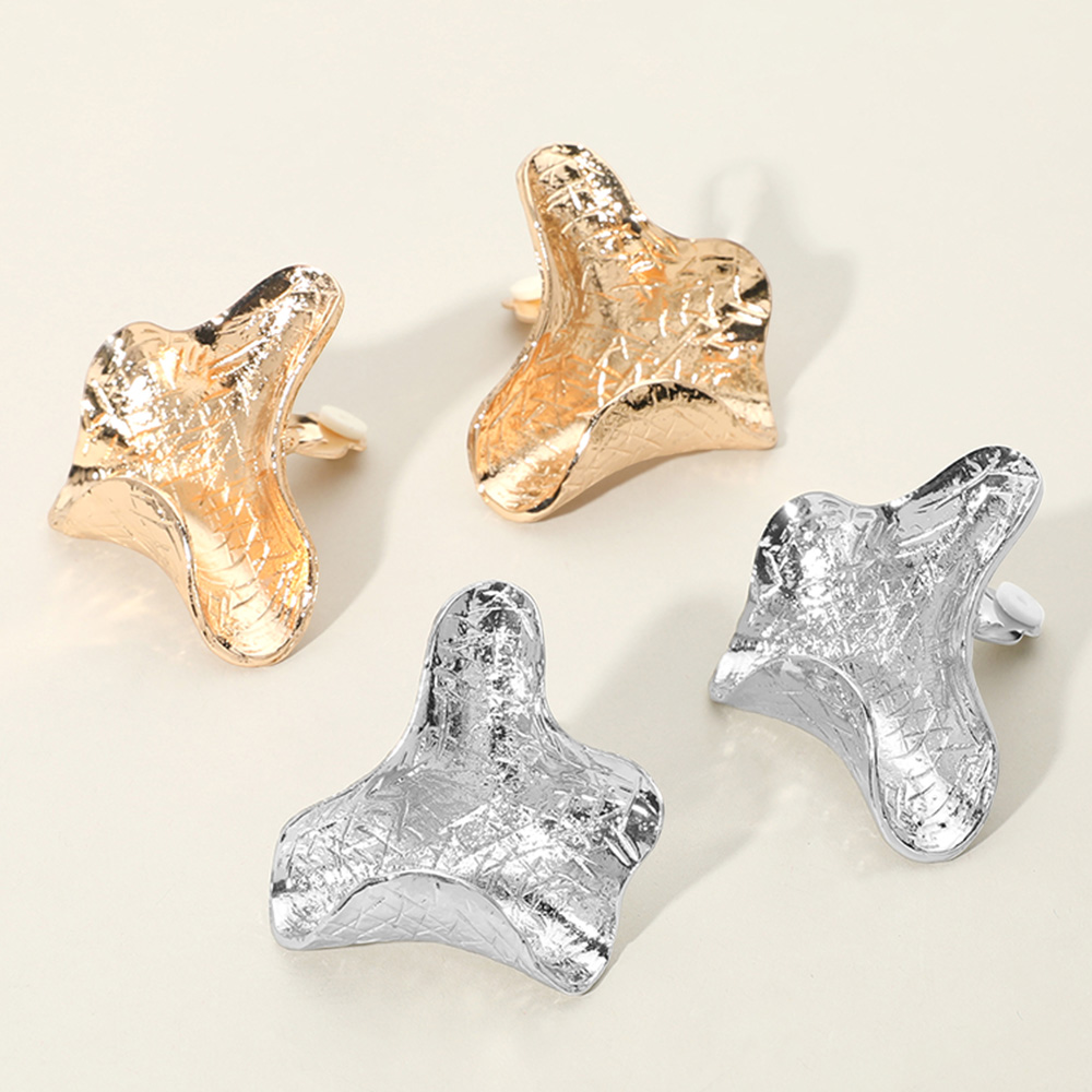 Details • Size : 1.7" X 1.5" • Clip On • Elevate your accessory game with these abstract-shaped clip-on earrings featuring a textured, organic design. Their sculptural form adds a bold, artistic flair to any look, offering comfort and statement-making style without the need for pierced ears. • Lead and Nickel Compliant