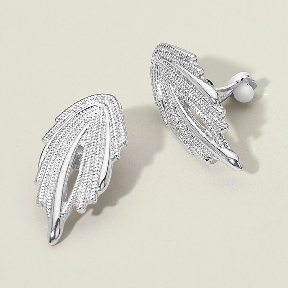 Details • Size : 0.75" X 1.5" • Clip On • Stylish and elegant, these abstract clip-on earrings feature a detailed textured design that brings a touch of nature-inspired charm. Comfortable and secure without the need for pierced ears, they are perfect for enhancing everyday outfits or adding a graceful accent to evening looks. • Lead and Nickel Compliant