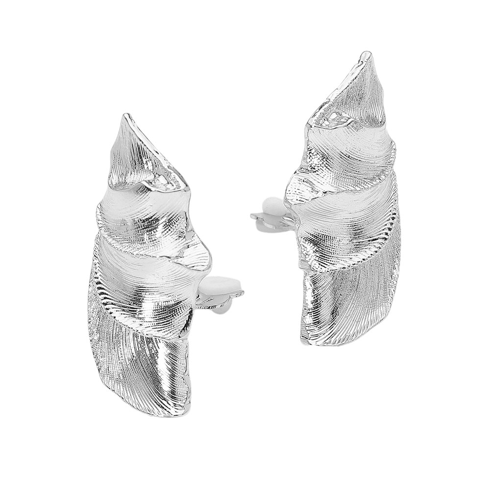• These textured folded clip-on earrings feature a graceful layered design inspired by organic forms. Their sculptural curves and dimensional detailing create a striking yet refined statement, offering a comfortable fit and elegant finish perfect for both modern and classic styles.