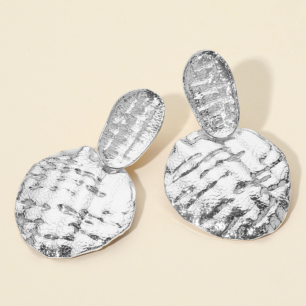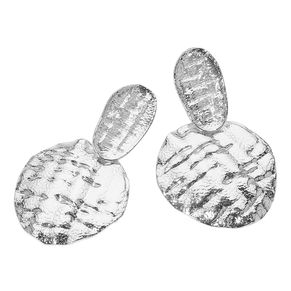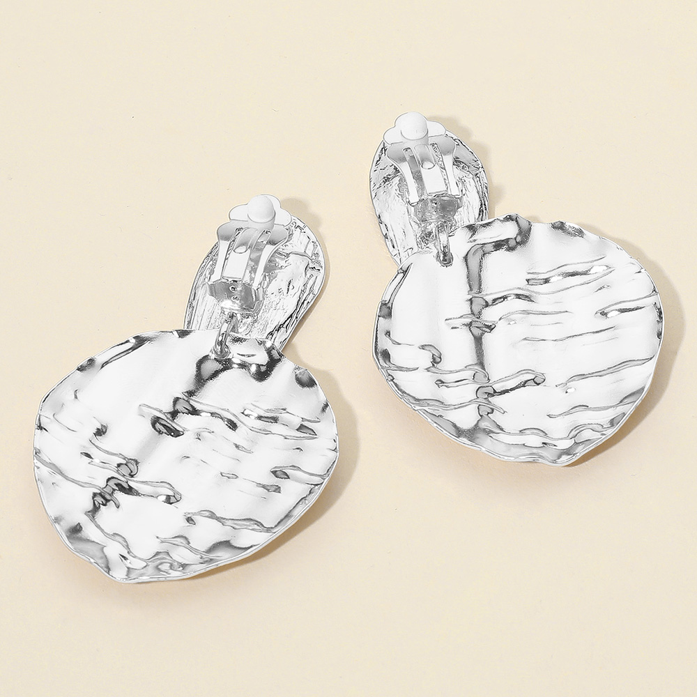 Details • Size : 1.7" X 2.5" • Clip On • Make a bold fashion statement with these textured abstract oval clip-on earrings. Featuring a hammered finish with layered oval drops, they add artistic flair and modern elegance. Comfortable clip-on design makes them ideal for non-pierced ears and versatile all-day wear. • Lead and Nickel Compliant