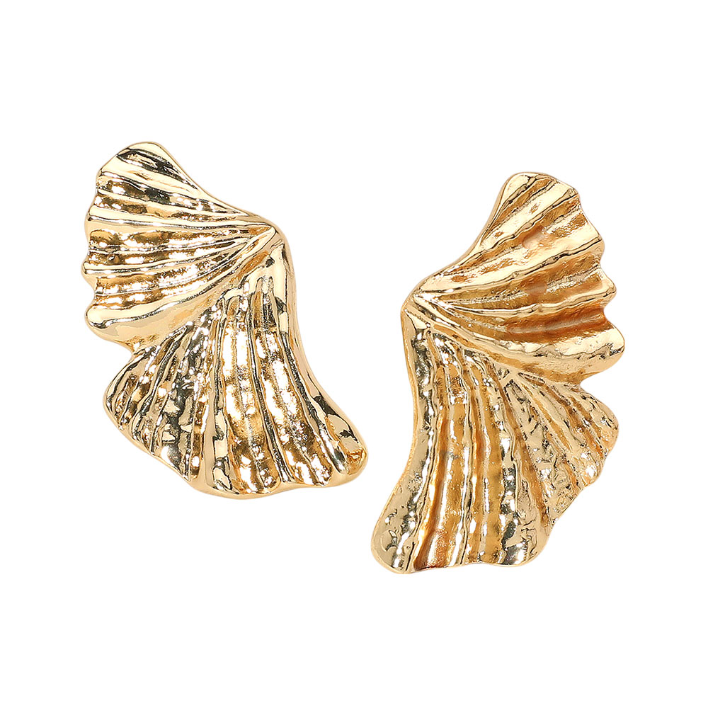 • Make a statement with these bold fan-shaped clip-on earrings. Featuring a textured, sculptural design, they add artistic flair to any outfit—perfect for non-pierced ears and standout accessorizing.