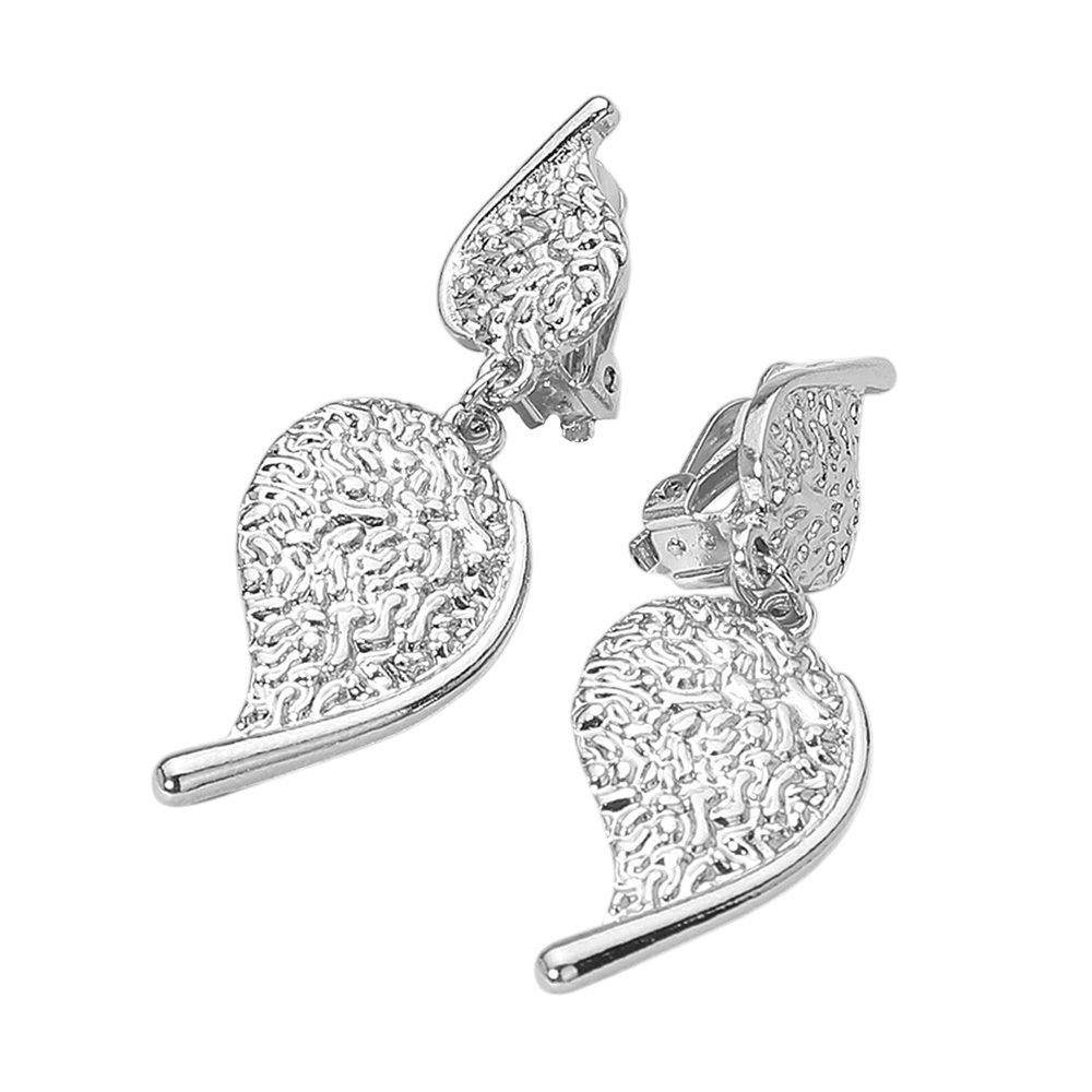 Details • Size : 0.7" X 2.25" • Clip On • These textured leaf clip-on earrings showcase a refined drop design with intricate detailing, perfect for adding sophistication to any outfit. Comfortable and versatile, they complement both casual looks and elegant ensembles, making them a timeless accessory choice. • Lead and Nickel Compliant