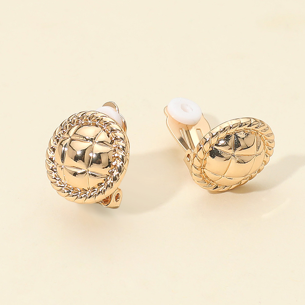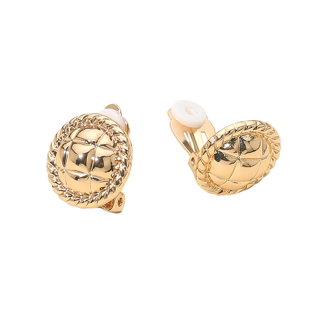 • Elegant round clip-on earrings featuring a quilted pattern with braided edge detail. Comfortable for non-pierced ears, these timeless earrings add a sophisticated touch to casual or dressy outfits, making them versatile accessories for everyday wear or special occasions.