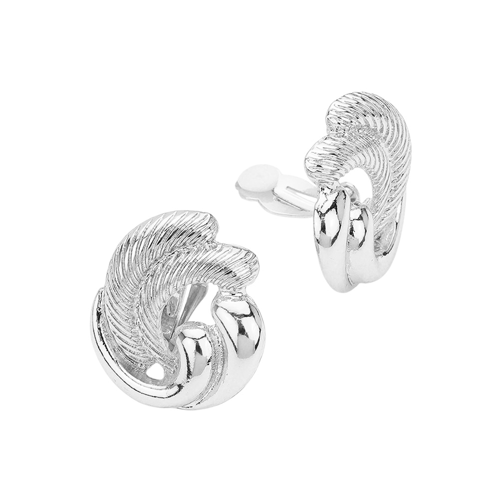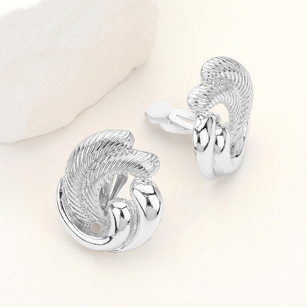 Details • Size : 1" X 1.25" • Clip On • These wave-inspired clip-on earrings bring sculptural elegance with their flowing curves and textured detailing. Designed for comfort and style, they make a refined statement accessory without requiring pierced ears. • Lead and Nickel Compliant