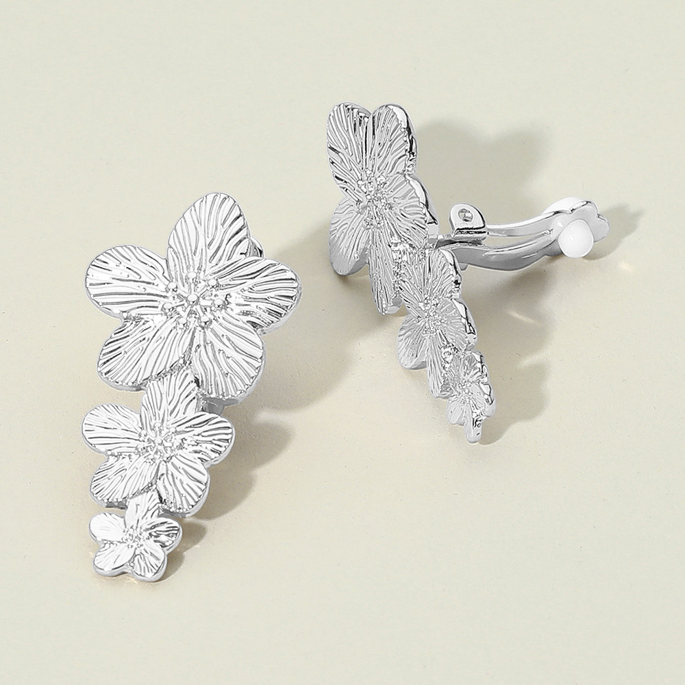 Textured Metal Triple Flower Drop Clip On Earrings