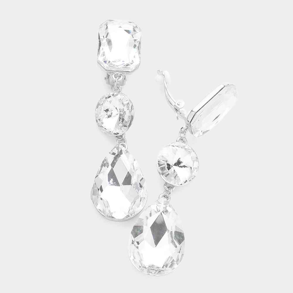 • Elevate your look with these faceted crystal drop clip-on earrings. Designed for brilliance and comfort, they add a touch of timeless glamour to both special occasions and everyday style.