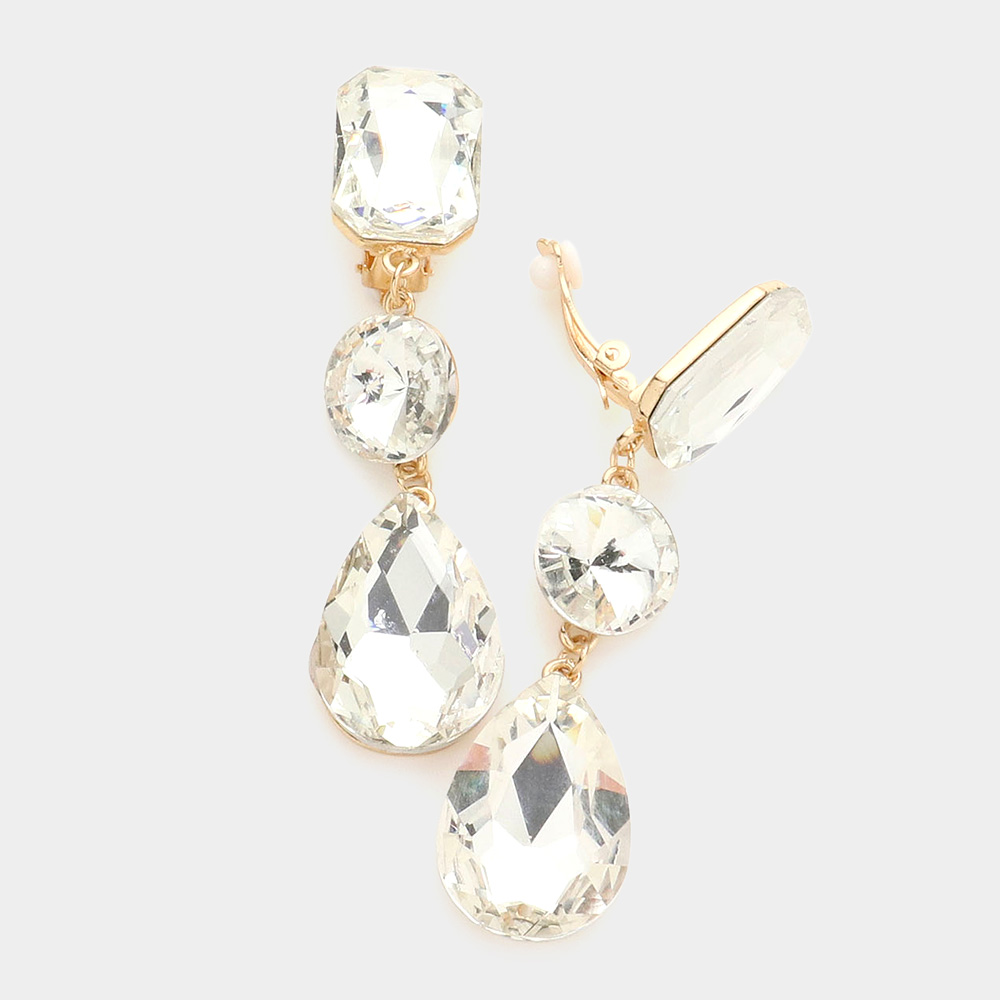 Teardrop Accented Rhinestone Fringe Dangle Evening Earrings
