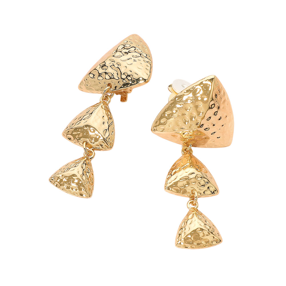Triple Hammered Metal Triangle Link Drop Clip On Earrings