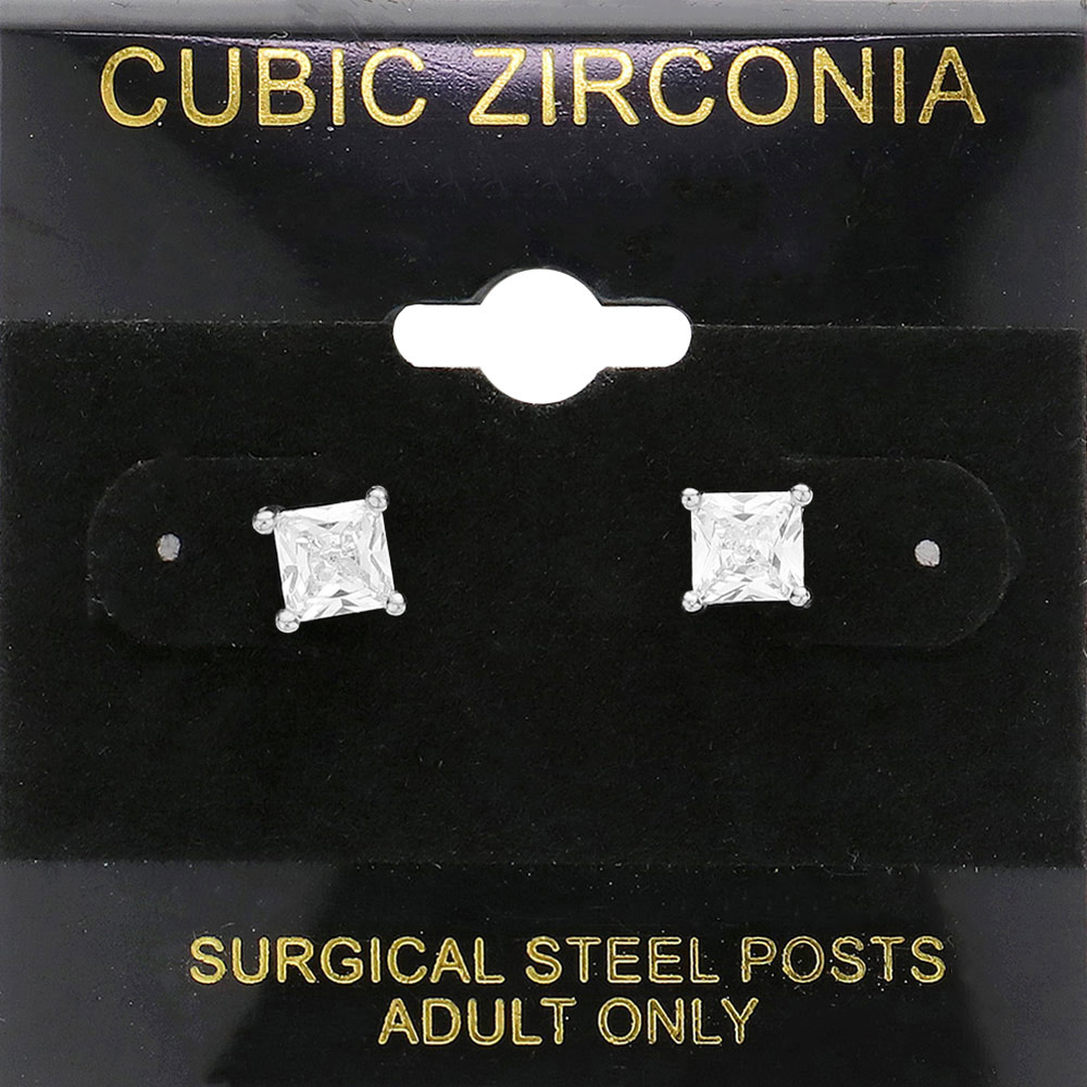 5mm Square CZ Stud Earrings