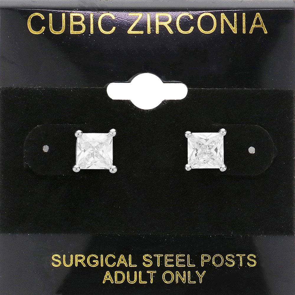 Gold Dipped Princess Cut Square CZ Stone Mini Stud Earrings