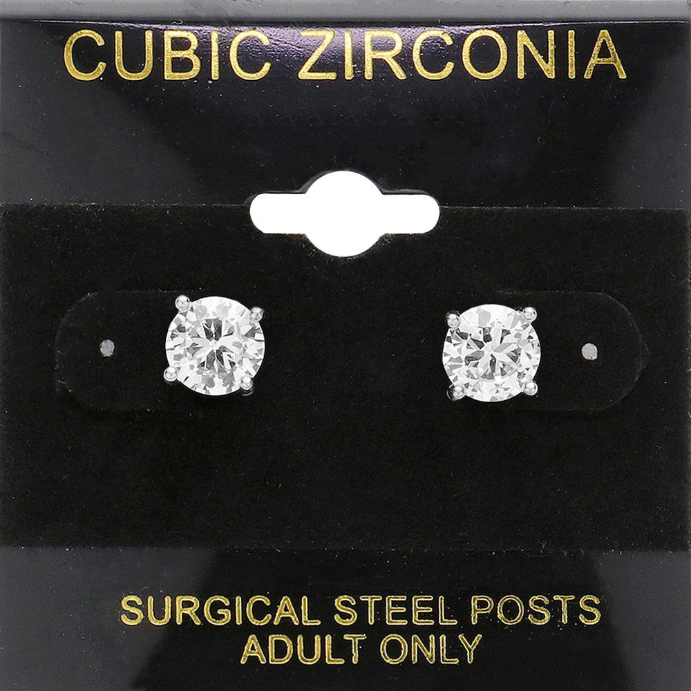 CZ Emerald Cut Stone Centered Evening Stud Earrings