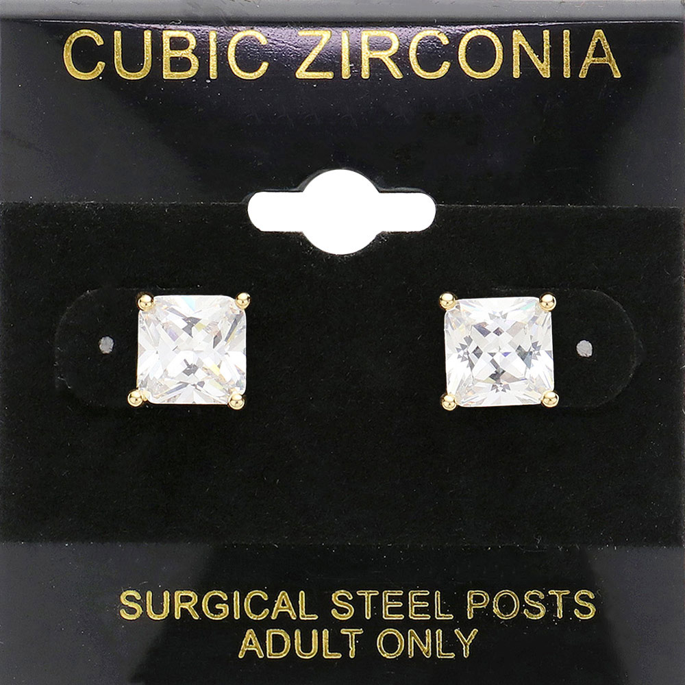 White Gold Dipped CZ Stone Paved Stud Earrings