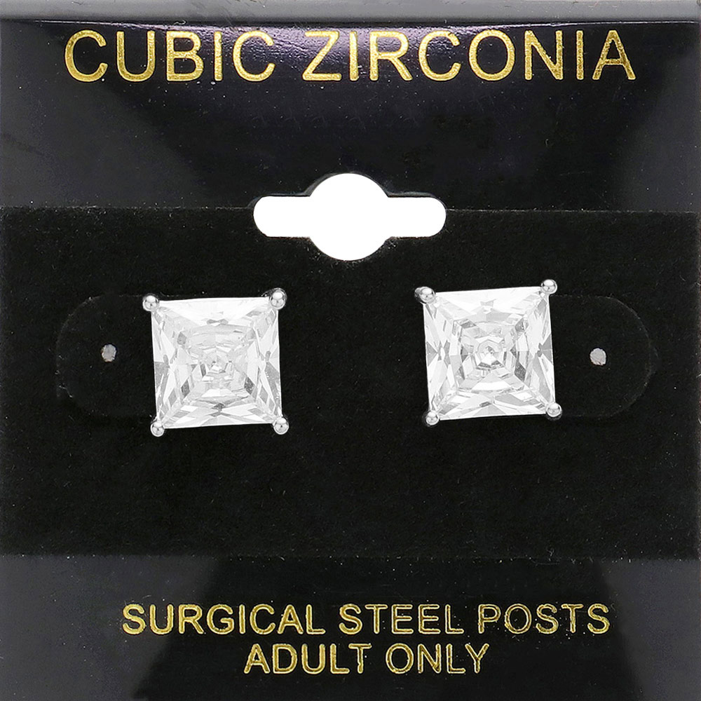 Gold Dipped 6mm Cubic Zirconia Square Stud Earrings
