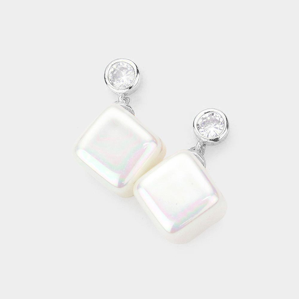 Crystal Cubic Zirconia Cube Pearl Earrings