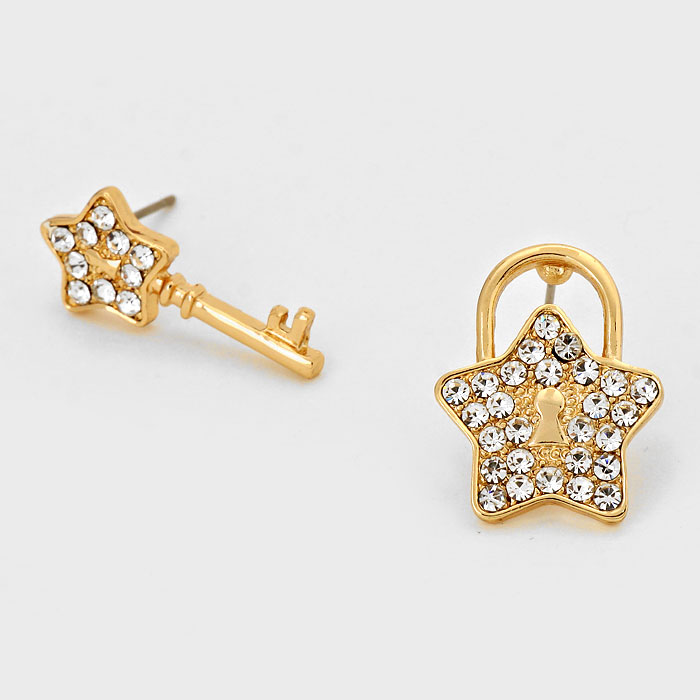 14K Gold Plated CZ Stone Paved Triple Lock Pendant Hardware Chain Necklace