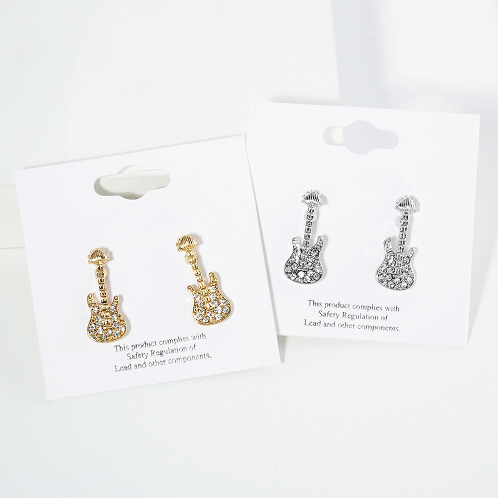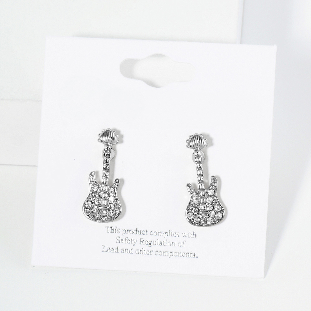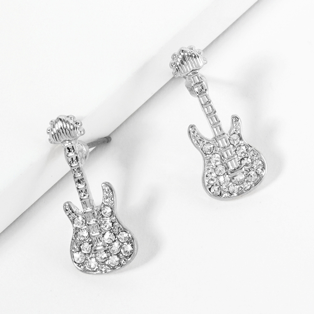 Gold Dipped Rhinestone Embellished Guitar Musical Note Pin Brooch