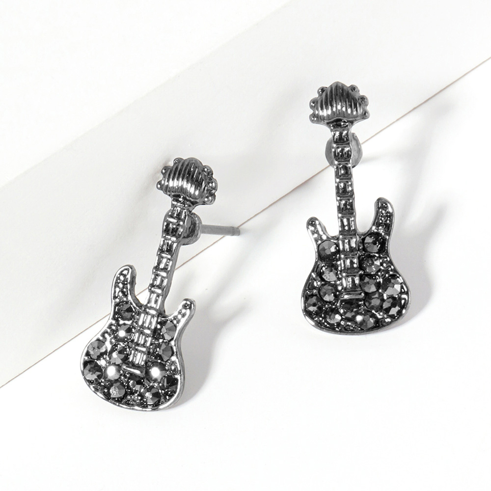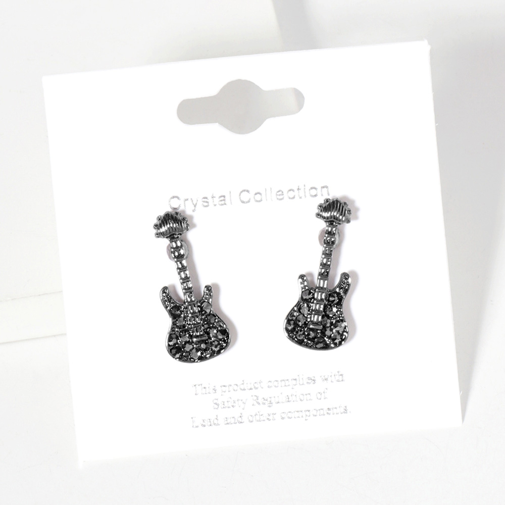 CZ Treble Clef Music Note Dangle Evening Earrings
