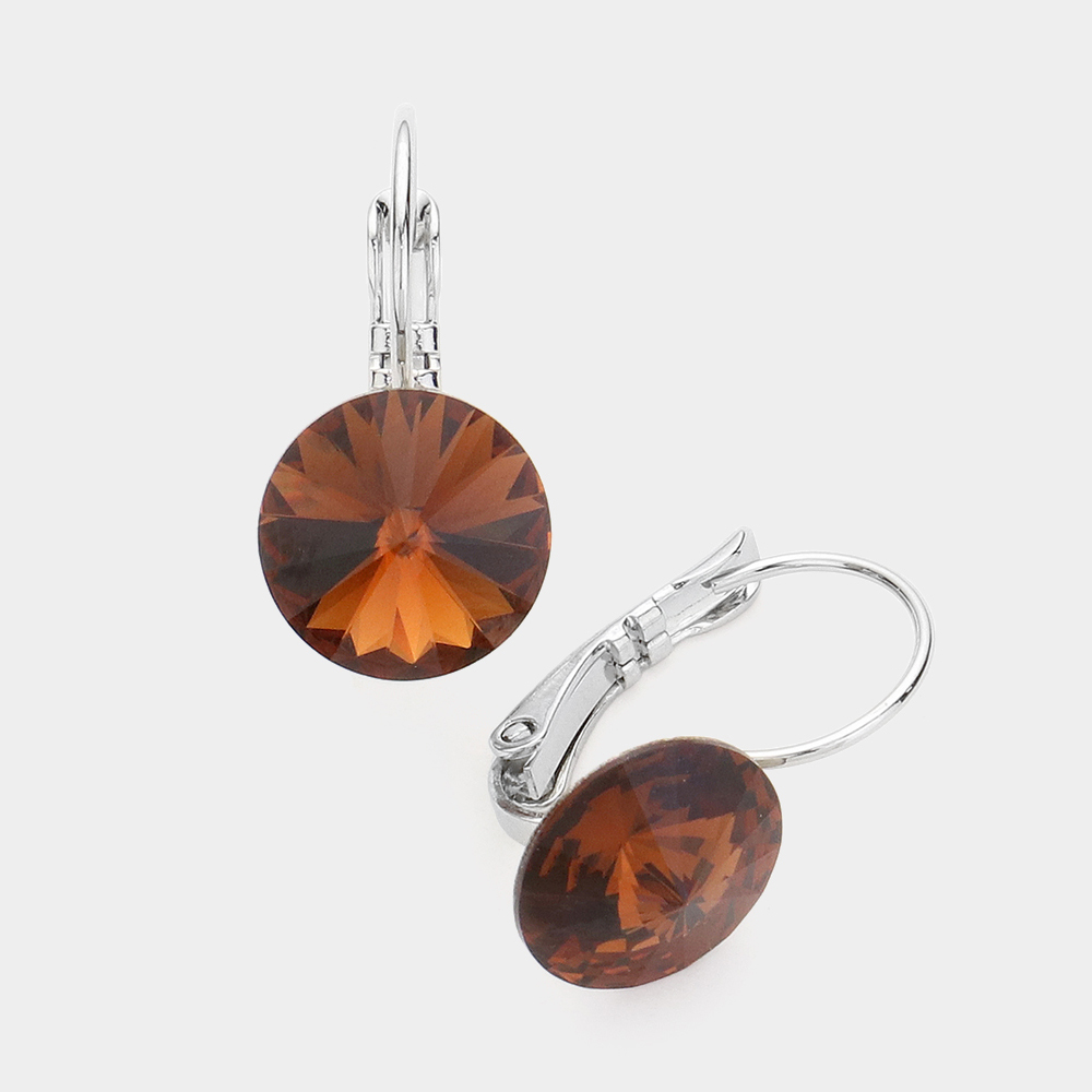 Genuine Round Crystal Lever Back Earrings