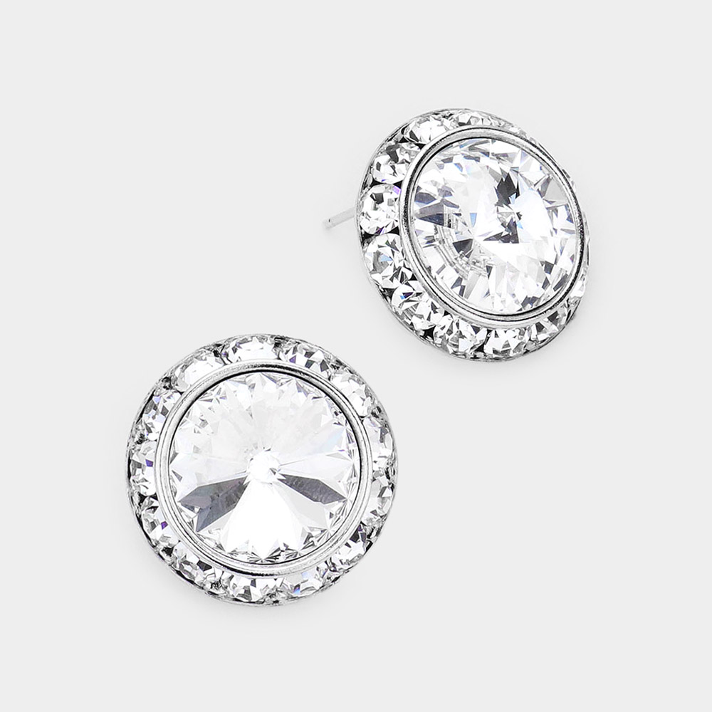 Rivoli Cut Genuine Crystal Round Stud Earrings