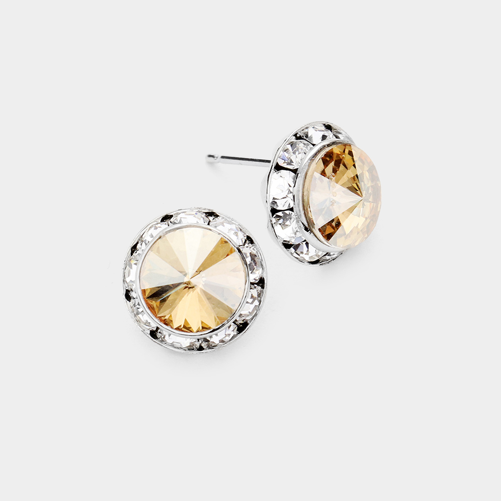 Rivoli Cut Genuine Crystal Round Stud Earrings