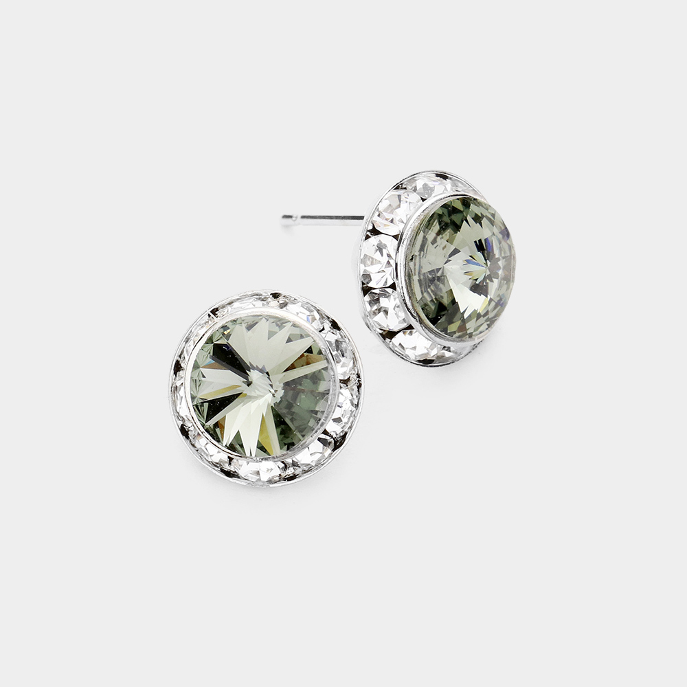 Rivoli Cut Genuine Crystal Round Stud Earrings