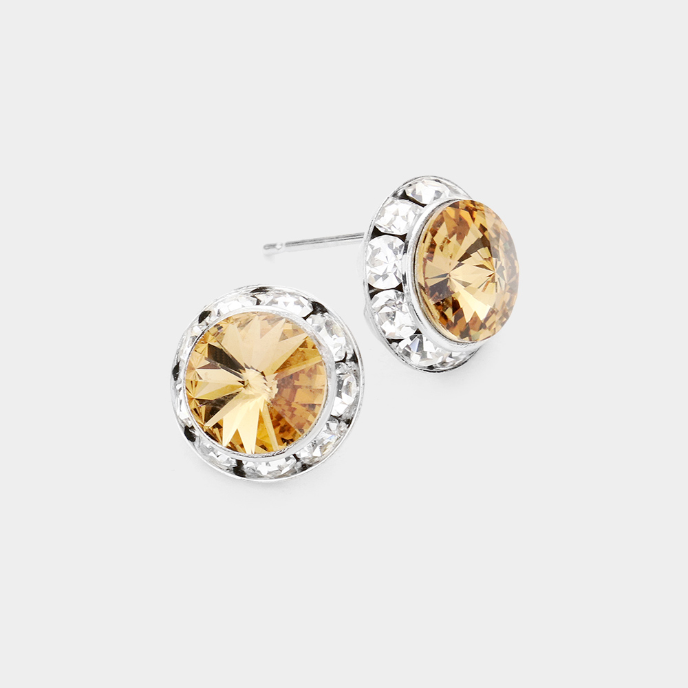 Rivoli Cut Genuine Crystal Round Stud Earrings
