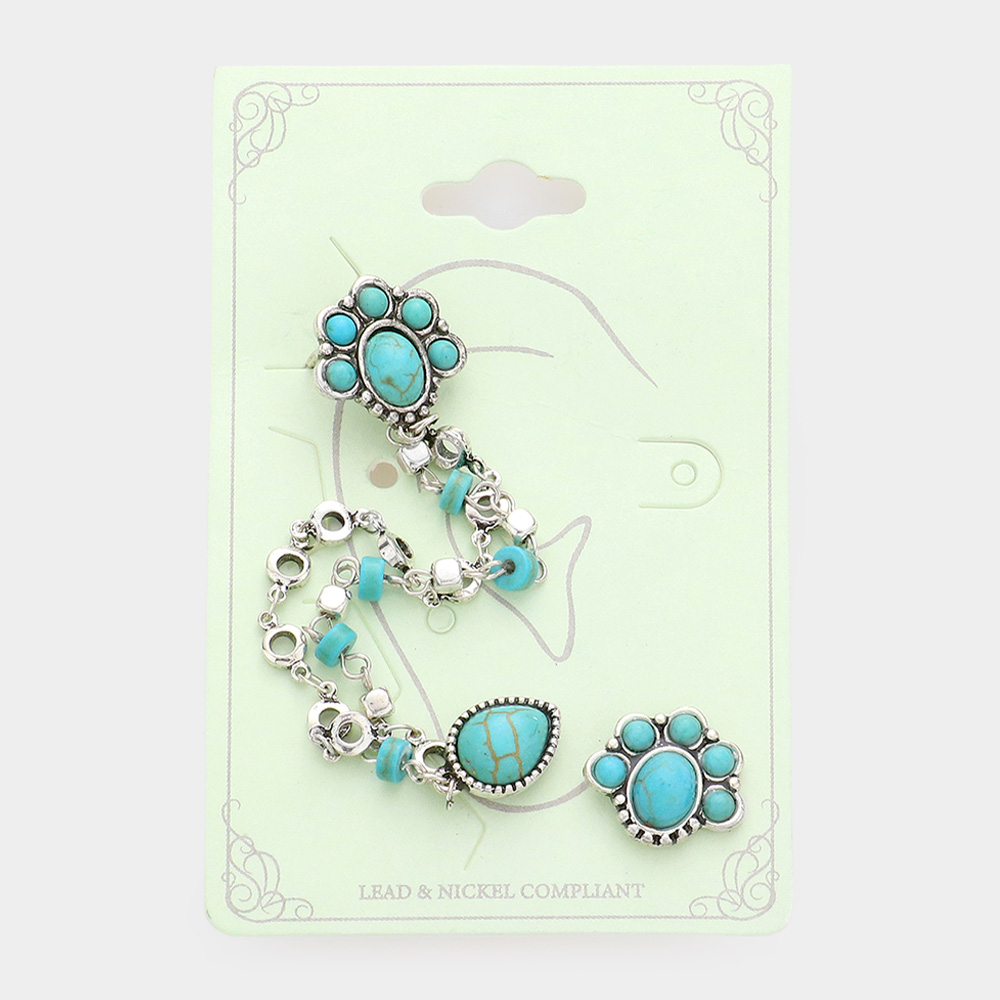 Western Teardrop Turquios Stone Cluster Pointed Stud Earrings