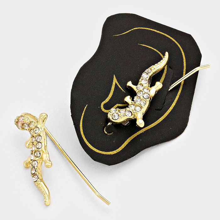 Rhinestone Paved Alligator / Crocodile Pin Brooch