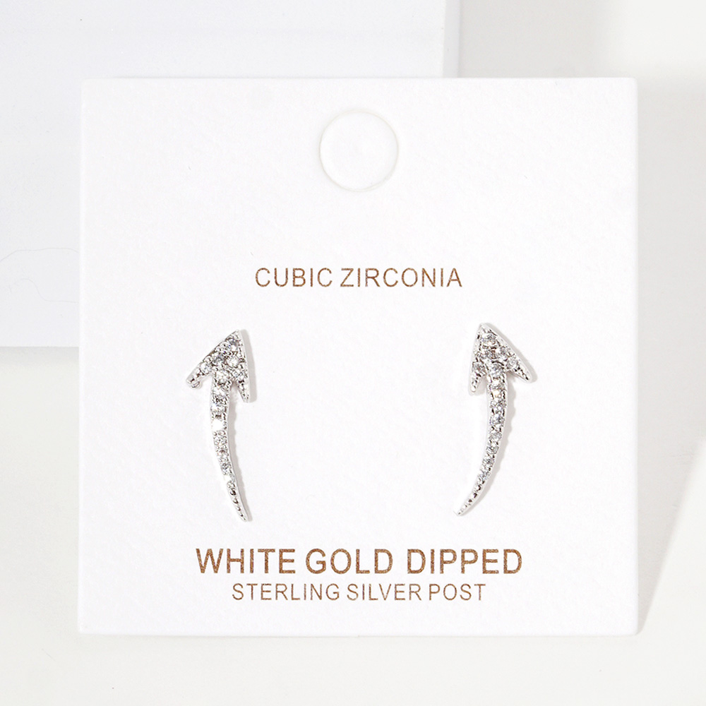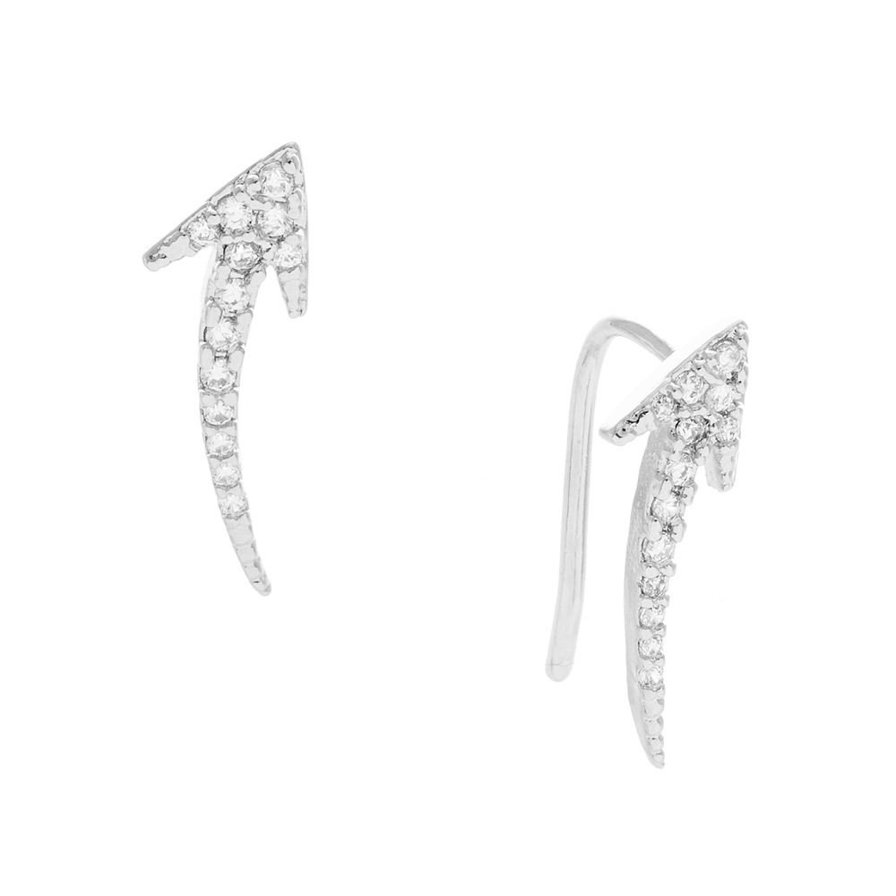 White Gold Dipped CZ Embellished Arrow Ear Crawlers