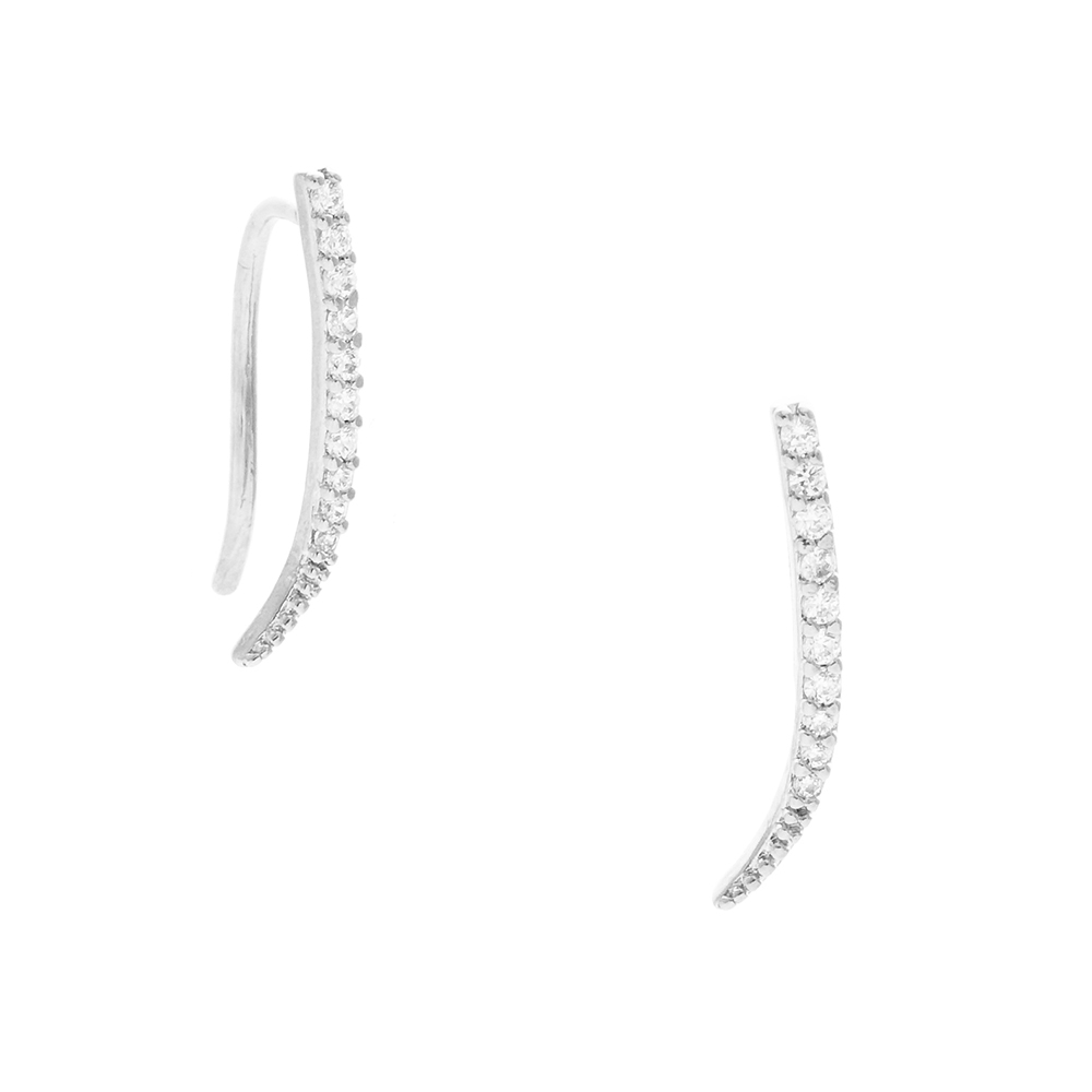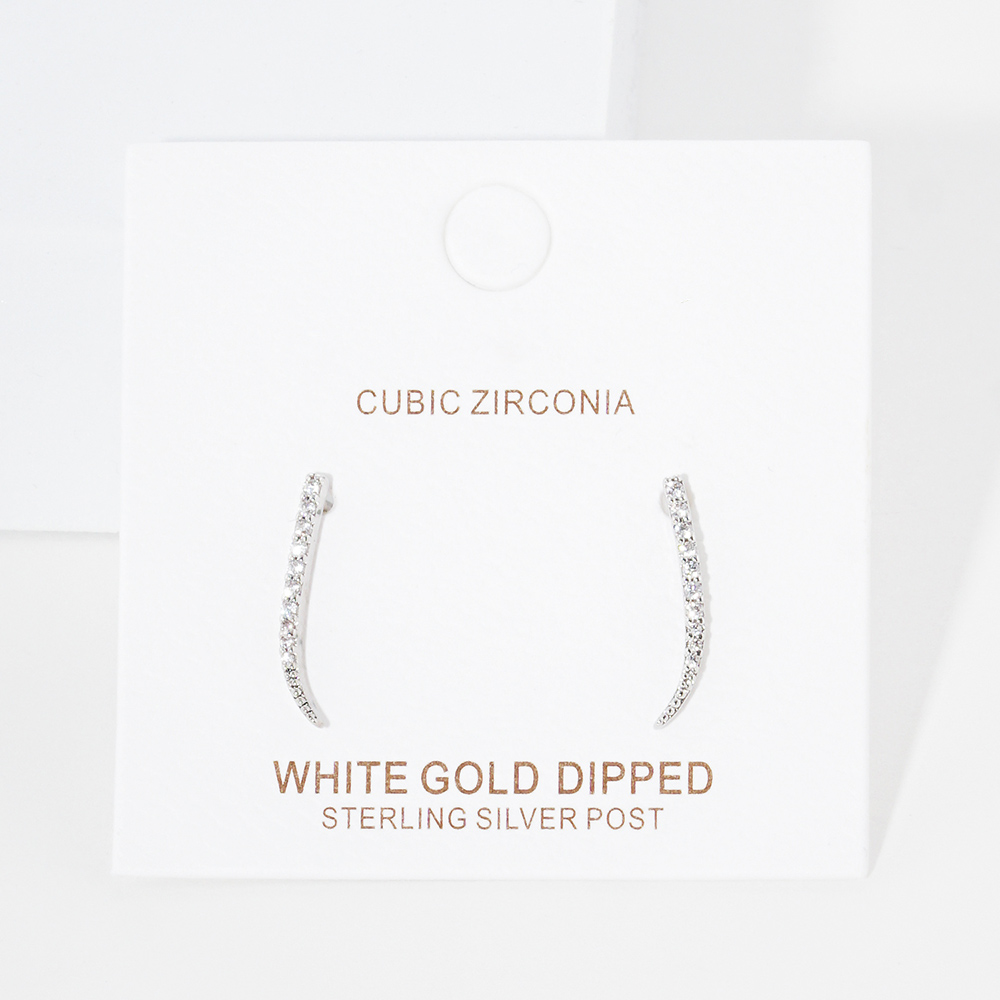 White Gold Dipped CZ Stone Paved Huggie Hoop Earrings
