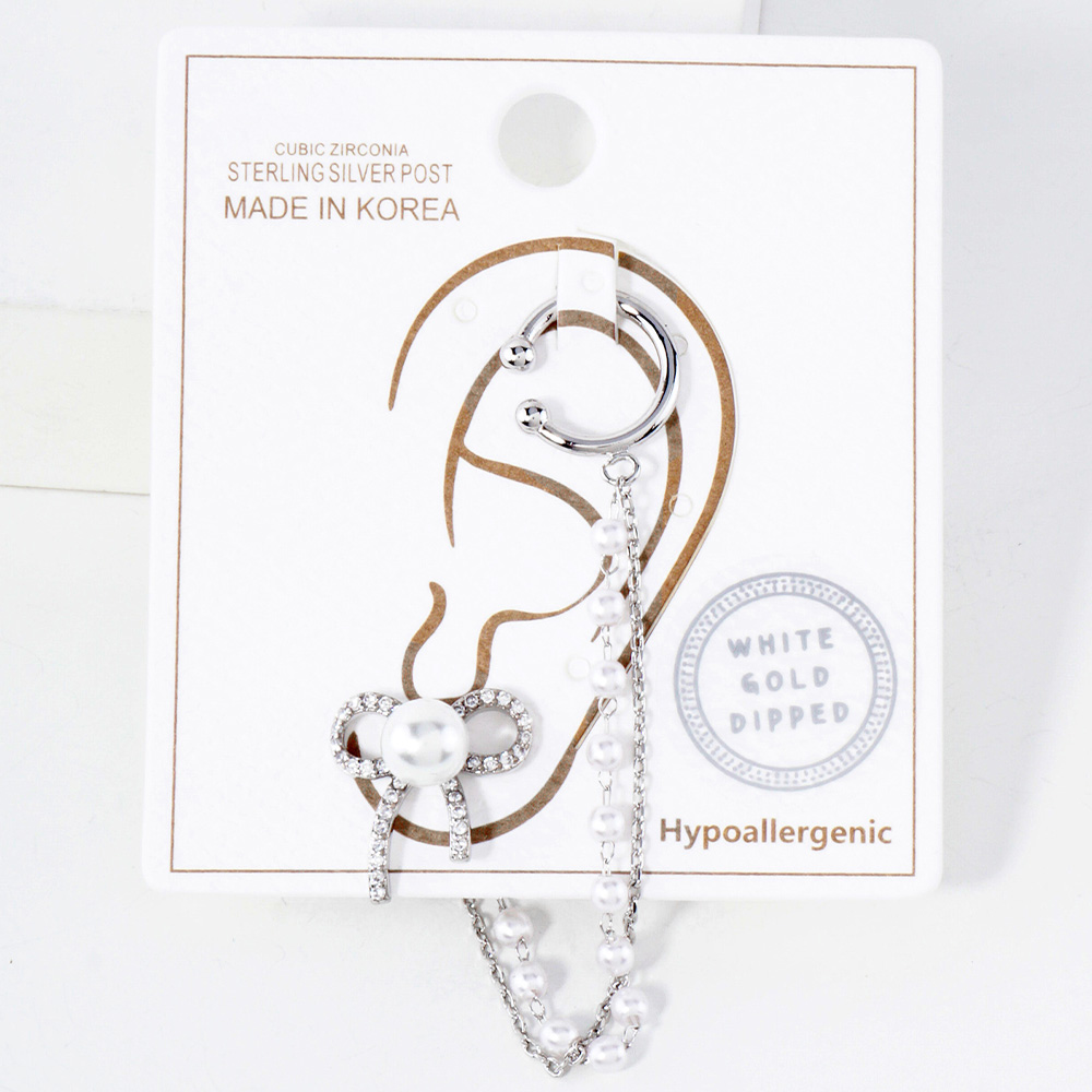 White Gold Dipped Pearl Accent CZ Stone Paved Bow Chain Ear Cuff Earrings White Gold Dipped Pearl Accent CZ Stone Paved Bow Chain Ear Cuff Earrings White Gold Dipped Pearl Accent CZ Stone Paved Bow Chain Ear Cuff Earrings White Gold Dipped Pearl Accent CZ Stone Paved Bow Chain Ear Cuff Earrings White Gold Dipped Pearl Accent CZ Stone Paved Bow Chain Ear Cuff Earrings